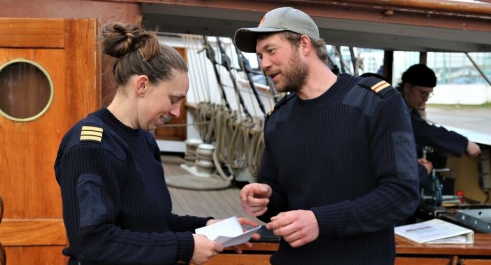 Nikolaj Berthelsen blev færdig med GU sidste år. Havde hyre på en trawler, da han blev kontaktet af Stiftelsen Georg Stage, der driver skoleskibet. Han fik at vide, at han var optaget. Mødte 21. februar op sammen med alle de andre nye elever. Så naturligvis er det hele meget nyt endnu.