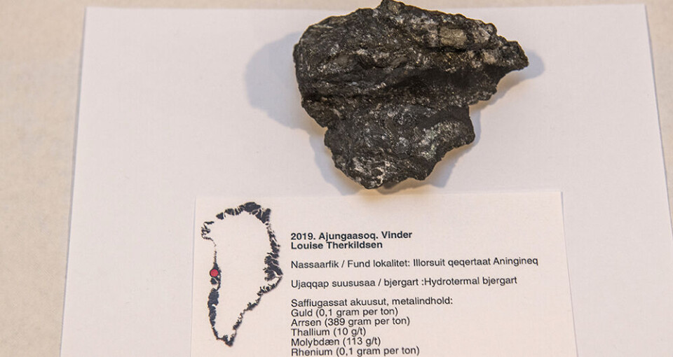 Louise Therkildsen præmieres for sin fund af en sulfid-bærende hydrotermal åre i en vulkansk bjergart fra øen Angineq. Prøven er fra et fast fjeld og bjergarten indeholder guld, arsen, thallium, molybdæn og rhenium. Det oplyser Selvstyret.