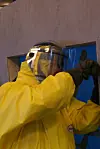 - De foranstaltninger, der skal tages, bliver indlært på det kursus som deltagerne gennemgår. Håndværkerne lærer simpelthen først at udtage en prøve af de fuger, der skal arbejdes med. Og på baggrund af undersøgelsen får de en vurdering af, hvad de står med. Hvis det er de såkaldte giftige stoffer, lærer de at beskytte sig selv og deres omgivelser. Beskyttelsen foregår ved, at der omkring området, der skal arbejdes i, opstilles miljøbokse. Her bliver luften suget ud gennem et filtreringssystem, der sikrer, at det omkringliggende miljø ikke kommer under indflydelse af de stoffer, der frigøres i forbindelse med en renovering eller nedrivning, forklarer Jan Christensen.