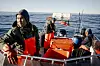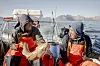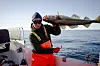 Barselaj, Enos og Eliaser spotter en sildepisker, der cirkulerer rundt om båden, mens de hiver torsk op.Foto: Oscar Scott Carl