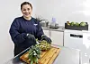 Her presser hun økologiske og friske grøntsager