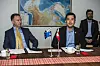 Administrerende direktør i Ironbark Jonathan Downes og naalakkersuisoq for råstoffer, Múte Bourup Egede ved underskrivelsen af udnyttelsestilladelsen