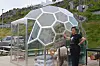 Pitsi Høegh, direktør i Greenland Sagalands, står foran virksomhedens nye kuppelhus, som hun planlægger at bygge flere af ude i fjorden omkring QaqortoqJulia Aka Wille