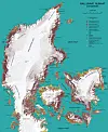 indlandsis og grønlandske stednavne. som viser et Danmark med stednavne, som