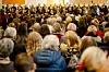 stærkt i rummet. Korsangernes kraftfulde stemmer smelter sammen med publikums