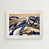 grafisk formsprog. Litografiet domineres af dybe blå nuancer, hvide flader og