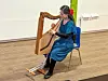 musikken, hun får frem med harpen, fylder hele Forsamlingshuset.