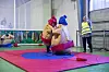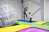 trampolin-afdelingen, og er kommet ind i en stor gennemsigtig plastikboble og