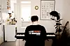 Lennert Jensen sætter sig over til keyboardet i stuen og jammer lidt.