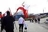 I runde tal 100 personer var mødt op om morgenen i bymidten, hvor det lokale kommunalbestyrelsesmedlem Kristian Broberg hejste flaget og holdt tale foran kommunekontoret.