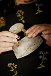 Gitte holder sin bedstemors ulu, som hun har arvet og bruger til al slags madlavning.Fotograf: Oscar Scott Carl