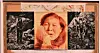 På udstillingen er der fem meget store kollager med fotos på baggrund af landkort. 2,10 x 1,80 er de store værker.