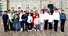 Prinsessen indledte besøget med at byde hver enkelte elev velkommen til slottet med et kongeligt håndtryk. Eleverne fra venskabsbyerne Tasiilaq og Gentofte havde øvet sig på at neje og bukke for prinsessen.