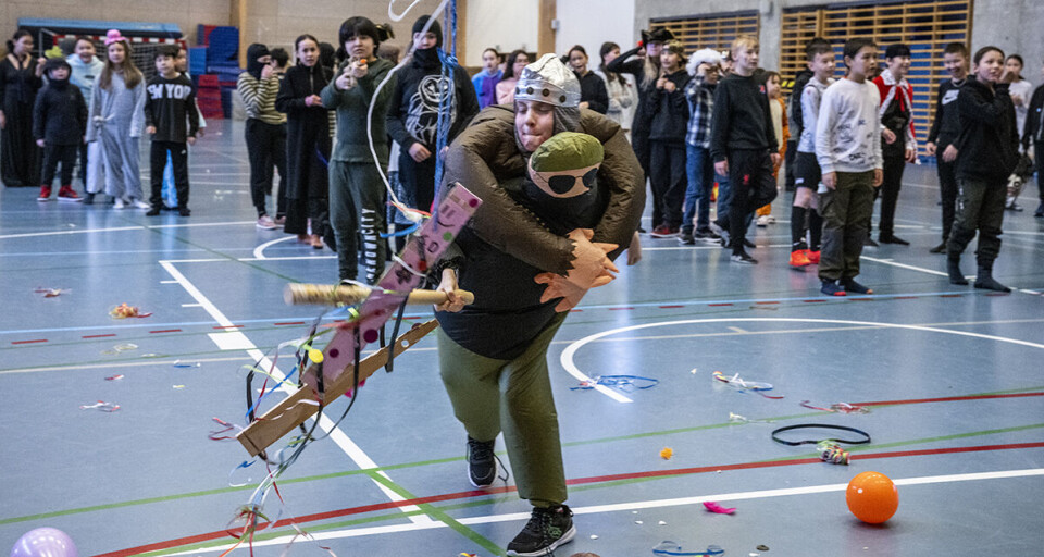 Eleverne skulle nemlig slå katten ud af tønden, og har i dagens anledning klædt sig ud.