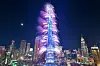 Fyrværkeri oplyser vartegnet Burj Khalifa-tårnet ved midnat i Dubai.