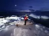 prøver hun at skyde sæler på isen.