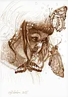 Sommerfuglemagi. Naja Abelsens værk i blæk af datteren med sommerfugle til den kommende udstilling ”Insektfortællinger” med Tegnerforbundet.Foto: Naja Abelsen