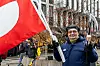 Der var ganske enkelt grønlandske flag overalt. Arrangørerne havde uddelt 500 papirsflag – og mange havde også medbragt deres egne flag. Blandt andre Henry Broberg fra Qeqertarsuaq, der nu har boet i Aalborg i to år, og som havde medbragt både flag og en dødemands-le med en Trump-dukke.
