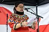 Formanden for Fællesforeningen Inuit Camilla Siezing var første taler og forklarede, at foreningen normalt ikke blander sig i politik.