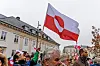 Der var ganske enkelt grønlandske flag overalt. Arrangørerne havde uddelt 500 papirsflag – og mange havde også medbragt deres egne flag. Blandt andre Henry Broberg fra Qeqertarsuaq, der nu har boet i Aalborg i to år, og som havde medbragt både flag og en dødemands-le med en Trump-dukke.