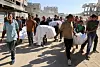 Sørgende bærer ligene af palæstinensere, som ifølge Gazas sundhedsministerium blev dræbt i et israelsk angreb på et telt natten over, uden for Nasser Hospital i Khan Younis, i det sydlige Gazastribe