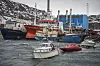 Både får en gyngetur under stormen ved værftet i Nuuk