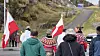 Borgere i Sisimiut samlede sig foran kommunekontoret i Qeqqata Kommunias bygning lørdag formiddag. På den anden side af vejen stod flere kommunalbestyrelsesmedlemmer sammen med fiskere og fangere, som bar faner.