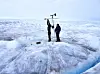 Forskerne prikker på isen med en pind for at undersøge, hvor