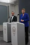 - Múte Bourup Egede under mandagens pressemøde, hvori han igen gjorde det klart, at Grønland selv træffer sine beslutninger.
