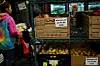 Beholdere med løg og kartofler med besked til brugerne, om at de kan tage "Hvad du kan bruge i ugen" hos Connections 4 Life-fødevarebanken i Fountain, Colorado, uger inde i den fortsatte nedlukning af den amerikanske regering.