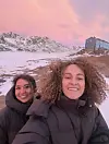 En del af DR's dækning af Grønland er et fast format med titlen 'Morgenpost fra Grønland', der udkommer hver morgen. Første udgave handlede om de mange journalister i Nuuk - to af dem poserer DR-journalisten Karoline Engelund sammen med på billedet her.Foto: Karoline Engelund, DR