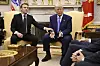 Det Hvide Hus i februar 2025, hvor Emmanuel Macron med en let hånd på Trumps