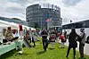 Ved 13-tiden kom de første mediefolk ud til teltene. Lidt efter kom de europæiske parlamentarikere med deres sekretærer. Efterhånden kom italienske nyheder, engelske BBC International og tyske ARD-journalister nysgerrigt og filmede alt det liv der var ved den grønlandske sælbod.