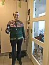 - Billedet er en selfie, som jeg tog derhjemme i entreen, da jeg havde købt en trøje, der er strikket af Lisa Sólrun Christiansen.