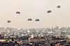 Her ses nødhjælp, der kastes ned over Gaza-striben.