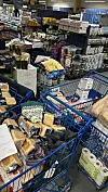fortæller at der kun er indkøbt madvarer som brød, morgenmad og kød, og at der