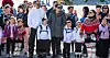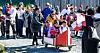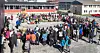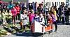 Børn i hvide anorakker og farverige nationaldragter blev budt velkommen af skoleinspektør Hector Lennert Sørensen.