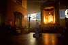En lysinstallation sørgede for en smuk stemning i kirken, hvor hele rummet var belyst i blå. Midt i rummet lå kunsthåb-installationen Nest, som de besøgende kunne lægge et æg i.