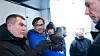 Projektleder Lasse Bøgeskov Mousten (til højre) forklarer Jens B. Frederiksen teknikken i brintanlægget; i midten Svend og sønnen Andreas Anuik. (Foto: Leiff Josefsen).