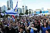 Israelere har samlet sig på Gidselpladsen i Tel Aviv. Her brød de ud i jubel, da syv gidsler mandag morgen blev udleveret til Røde Kors.
