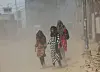 Piger undervejs på gaden i New Delhi under hedebølgen. Tirsdag blev der målt 49,9 grader i byen.