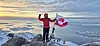 Solens stråler brød frem, mens Jukku og hans ledsagere hejste det grønlandske flag.Foto: Privat