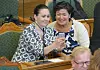 Folketingsmedlemmerne Aaja Chemnitz Larsen og Aleqa Hammond tager et selfie til Folketingets første møde