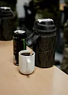 Den perfekte kombi til at holde sig vågen: Kaffe, energidrik og vand, står placeret på bordet foran en elev, da de har klasseundervisning.Foto: Oscar Scott Carl