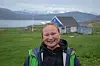 Museumsleder ved Narsaq Museum, Jesper Stormly Enevoldsen. På grund af regnen valgte han at lade folk komme ind på museet kvit og frit, da kongeparret kom forbi Narsaq.Julia Aka Wille