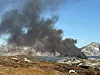 Der er kraftig røgudvikling fra branden i Kulusuk.Foto: Nukappi Boassen Wille