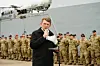 Forsvarsminister Troels Lund Poulsen (V) var torsdag formiddag i Korsør for at tage imod fregatten "Iver Huitfeldt" og besætning, som er hjemvendt fra en mission i Det Røde Hav.