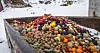 Der ligger en stor åben container på dumpen i Nuuk. Containeren er fyldt med farverige frugter og grøntsager. Alt fra skinnende røde peberfrugter, flere klaser lilla vindruer fra Spanien og store, grønne meloner til salatblade fra Danmark.