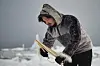 en af Nuuks lokale caféer, iført en ternet lyseblå og hvid anorak, som han i