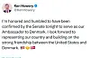 og ydmyg over at være blevet godkendt af Senatet i aftes som vores ambassadør i Danmark. Jeg ser frem til at repræsentere vores land og